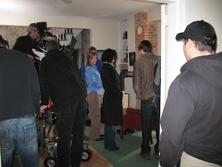 Saturday, March 21st, we held our first meeting with the actors at the location we will be using for Dr. Larson's house. We spent several hours talking about story and character, reading through the script at the table...and walking through the scenes. Deborah Fiscus (wardrobe) and Dina Dainty (hair/makeup) stopped by to talk with the actors.